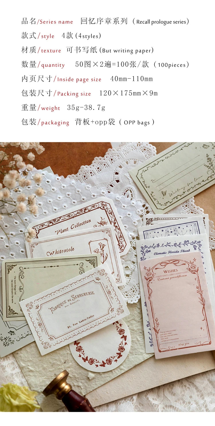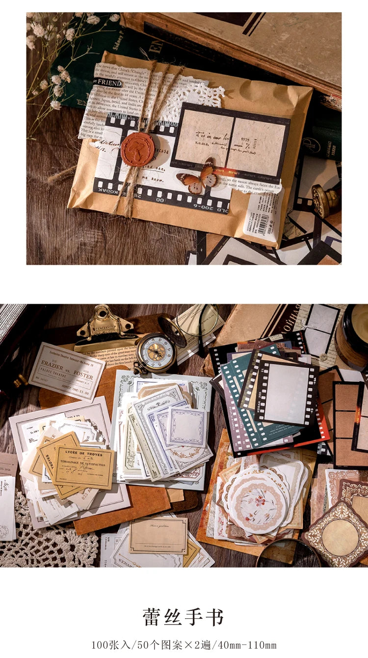 100 pieces of vintage-style writable paper for journaling and scrapbooking